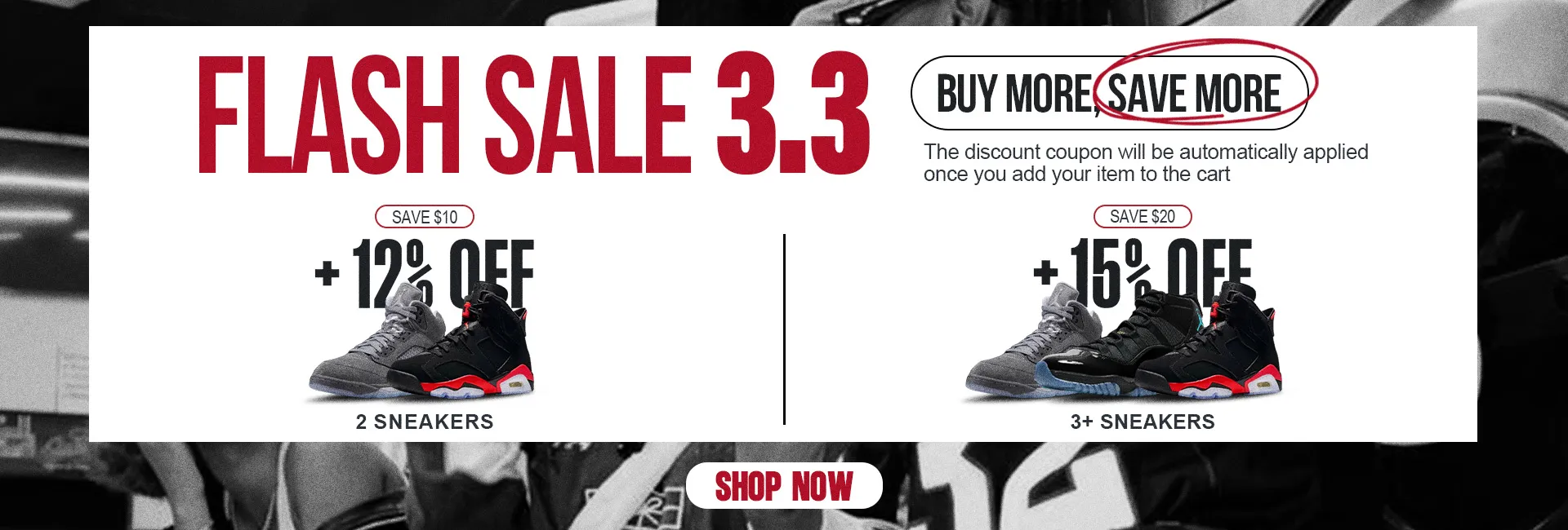 Get 12% OFF on 2 any items, 15% OFF on 3 items, 18% OFF on 4 items