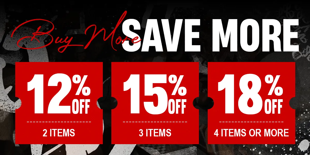 Get 12% OFF on 2 any items, 15% OFF on 3 items, 18% OFF on 4 items
