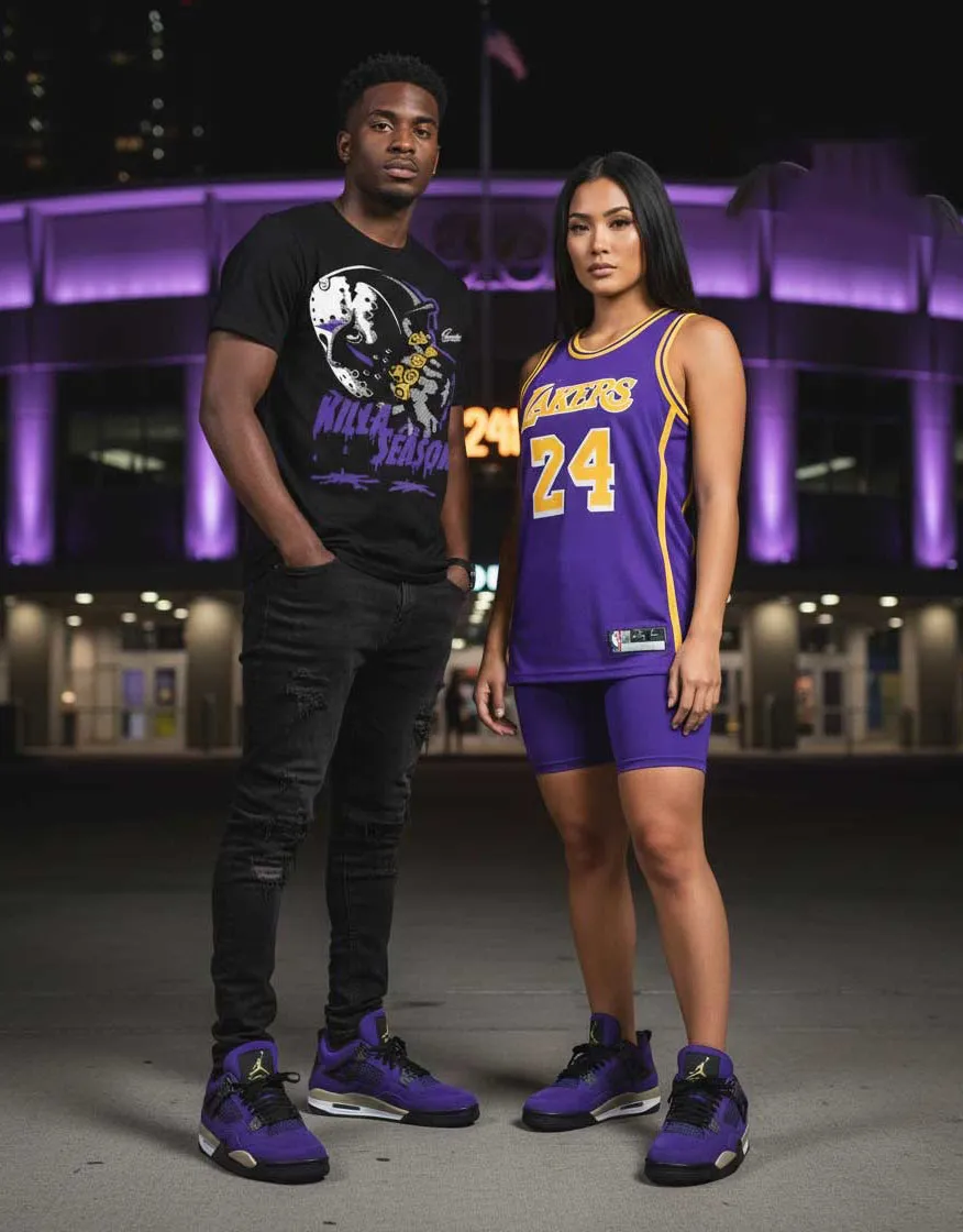 Pair it with baggy denim and a vintage Lakers jersey for a true โ90s hardwood feel, or keep it monochrome in black or grey to let the purple stand out. Elevate it with cargos and an oversized hoodie for a modern, heritage-driven vibe. A former rivalโs colors. A championโs silhouette reborn.