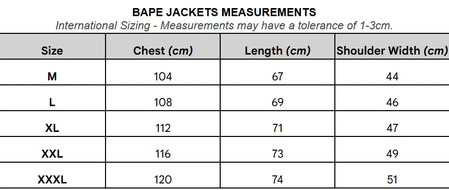 Description: The BAPE Jacket is a premier icon of Japanese Streetwear culture, renowned globally for its exclusivity and disruptive aesthetic. The product features diverse designs that deliver a dynamic and bold appearance. The BAPE Jacket is a powerful style statement, instantly recognizable by exclusive brand elements, asserting strong individuality and superior status within the Streetwear community.
