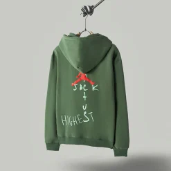 Description: The Travis Scott Graphic Print Hoodie is a limited-edition collectible piece, representing the Cactus Jack brand and intrinsically linked to Travis Scott’s music and events. The product boasts premium cotton fleece and features a definitive oversized fit, making it universally stylish for all genders and body types in the streetwear realm. Defined by bold, exclusive graphics and the artist’s unique logo, this hoodie is a powerful style statement that asserts presence in both hip-hop and street fashion culture.