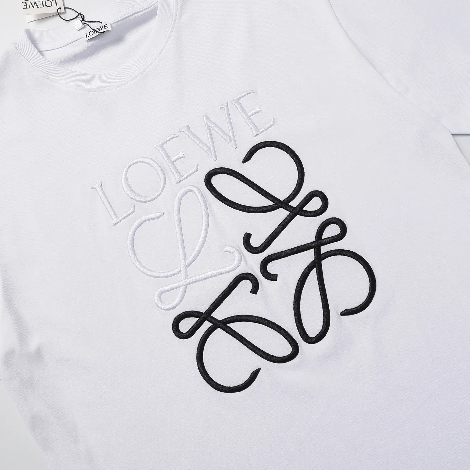 Description: The Loewe T-Shirt is a refined fusion of Spanish craftsmanship heritage and contemporary artistry, representing minimalist luxury style. The product is crafted from premium cotton material, featuring a comfortable and impeccably tailored fit. The Loewe T-Shirt is a sophisticated style statement, identifiable by high-artistic logos or prints, asserting a unique, luxurious aesthetic and finesse in fashion.