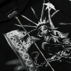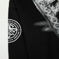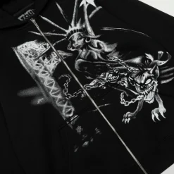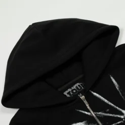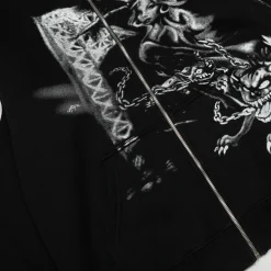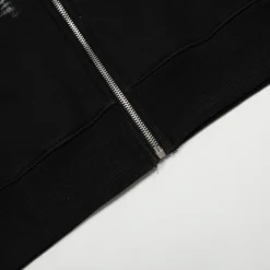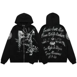 Description: The Travis Scott Graphic Print Full Zip Hoodie is an exclusive Cactus Jack merchandise piece, offering greater versatility with its full-length zip-up design. This hoodie maintains the signature oversized fit, is constructed from heavy-duty fleece, and includes a practical hood and side pockets. The distinct feature is the bold, expansive graphic prints (often covering the entire garment, including the hood and sleeves), establishing an ultimate streetwear statement with powerful artistic exclusivity.