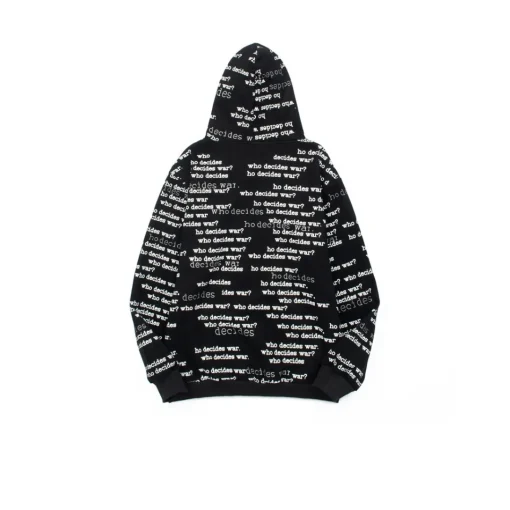 The Who Decides War Hoodie is the embodiment of conceptual high-end streetwear and artistic depth. The product represents a fusion of social messaging and disruptive style, delivering an impactful and thought-provoking appearance. The WDW Hoodie is a powerful statement of individuality, instantly recognizable by its unique brand elements, asserting a pioneering aesthetic and a singular fashion philosophy.